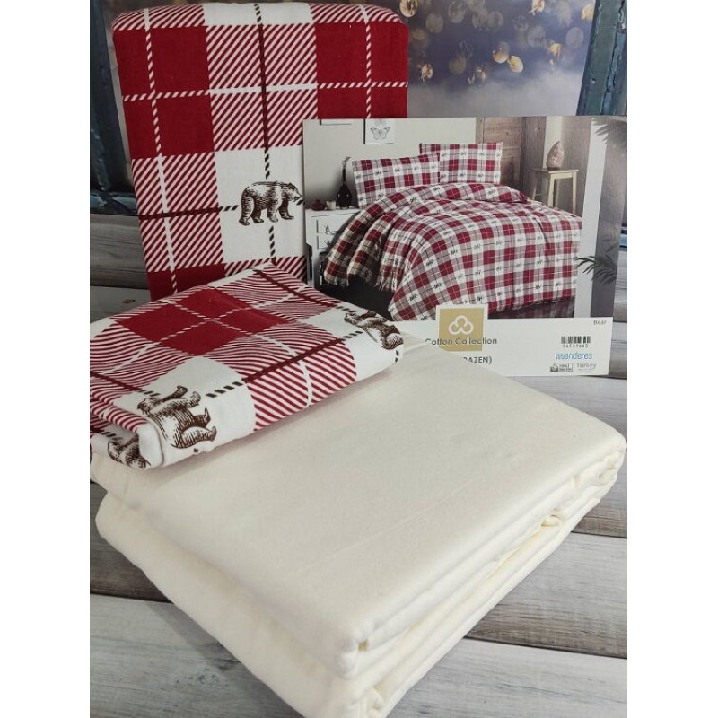 Тепла полуторна постільна білизна з фланелі (байка)COTTON COLLECTION ТУРЕЧЧИНАВироблено з натуральної бавовни. В наборі:- підковдра 160х220см.- простирадло 180х260см.- наволочка 50х70см., 1 штука.