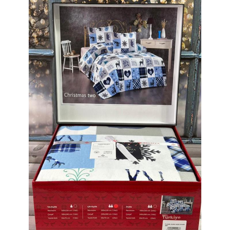Chrismas two Євро фланелева постільна білизна. Бавовна. (71762)