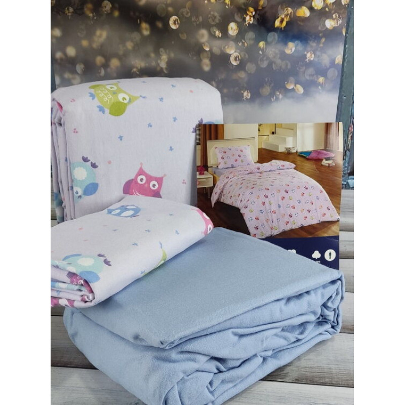 Тепла полуторна постільна білизна з фланелі (байка)COTTON COLLECTION ТУРЕЧЧИНАВироблено з натуральної бавовни. В наборі:- підковдра 160х220см.- простирадло на резинці 100х200см., +30см.- наволочка 50х70см., 1 штука.