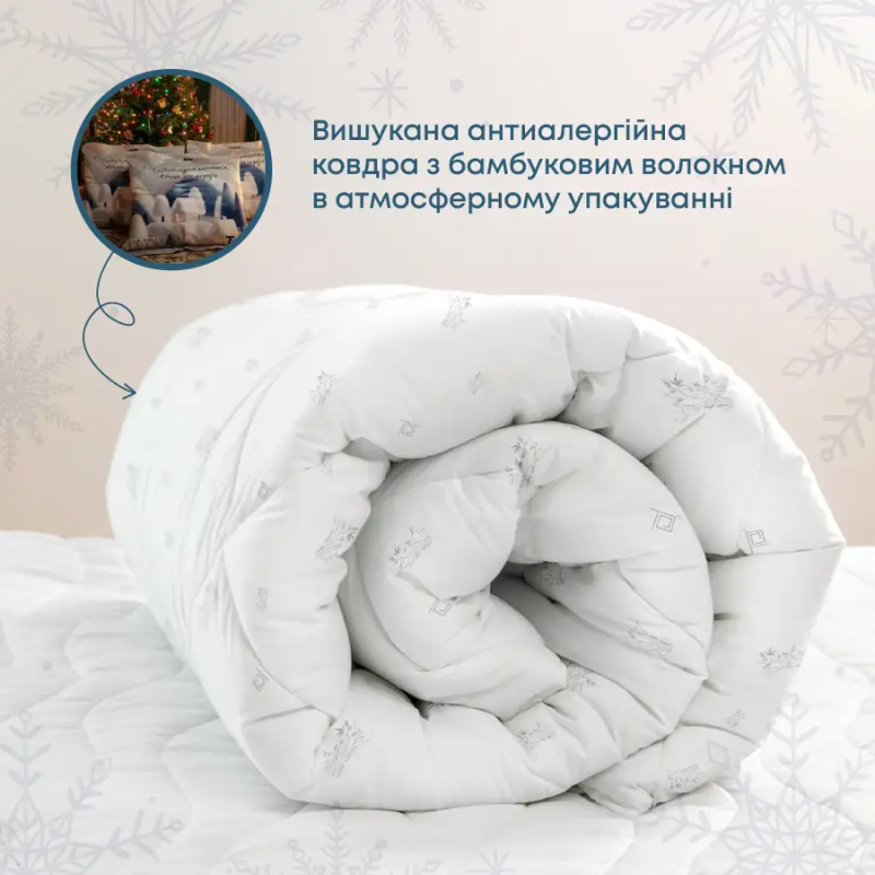 - Натуральність та екологічність: Виготовлена з бамбукового волокна, ковдра є гіпоалергенною та безпечною для чутливої шкіри.