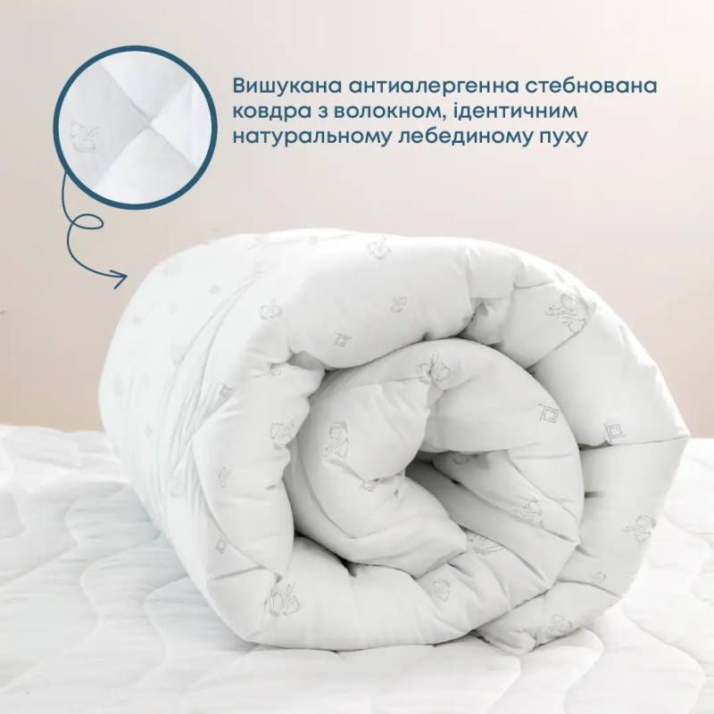 - Оптимальний температурний режим: Ковдра чудово зберігає тепло взимку та забезпечує прохолоду влітку, створюючи комфортний мікроклімат для сну.
