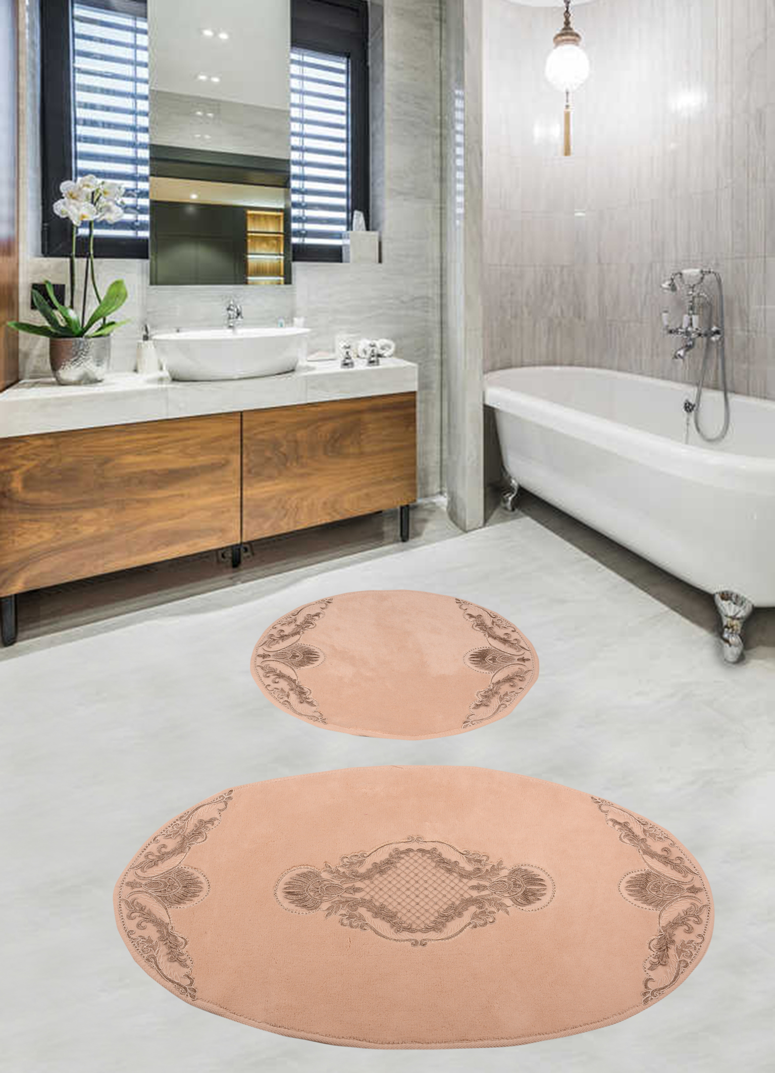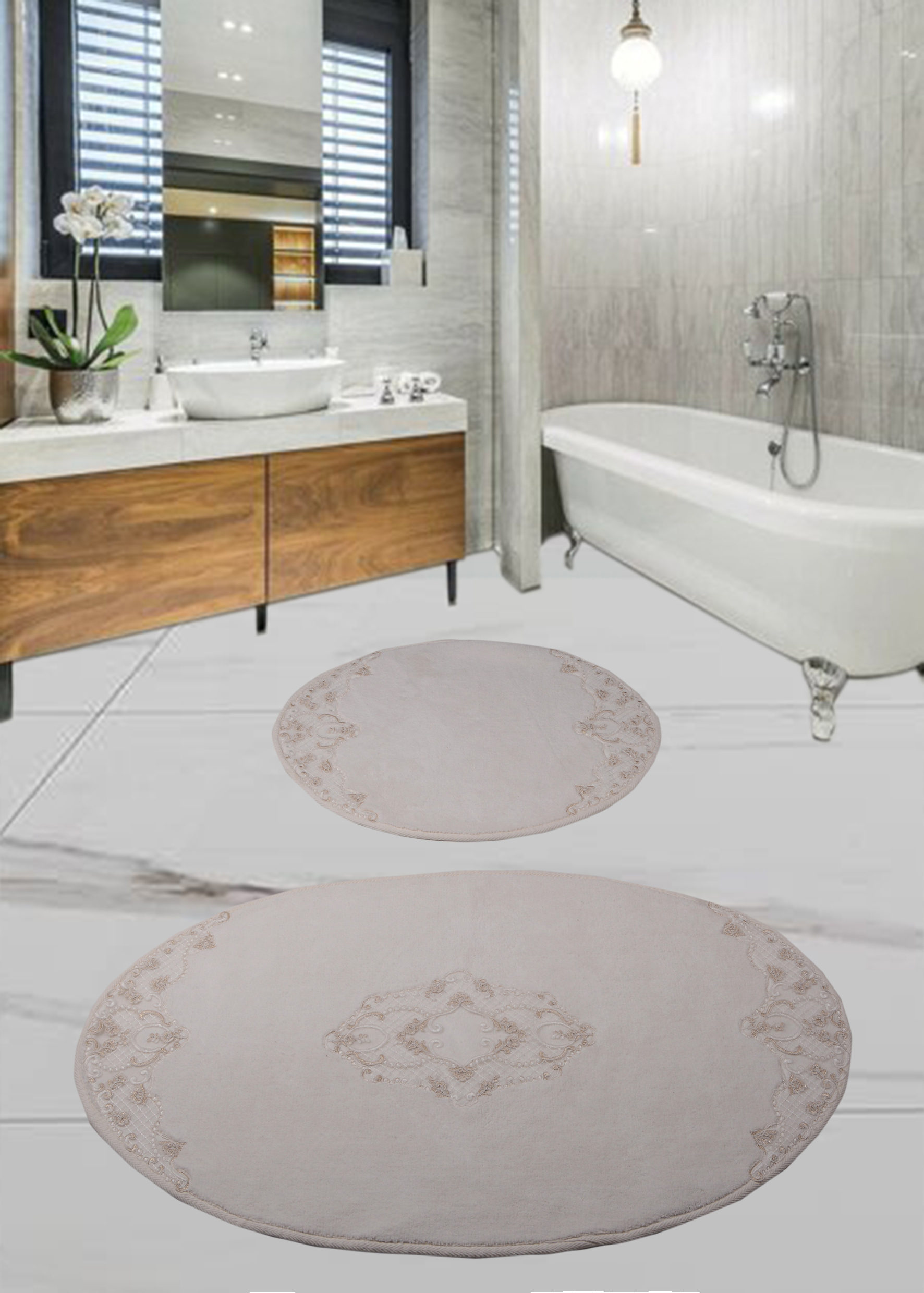 Набор ковриков для ванной комнаты с гипюром Diva Nice Beige 60*100+50*60