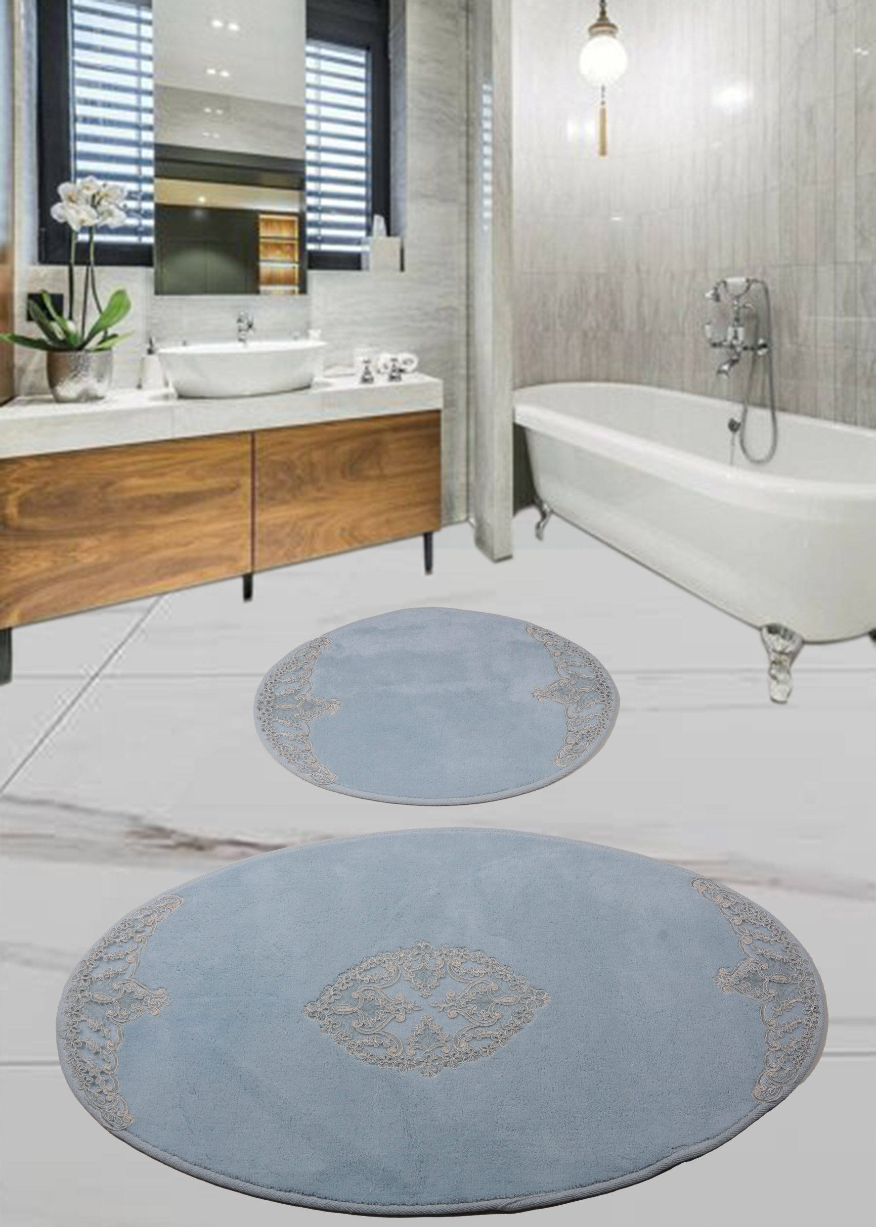 Набор ковриков для ванной комнаты с гипюром Diva Nice L Blue 60*100+50*60