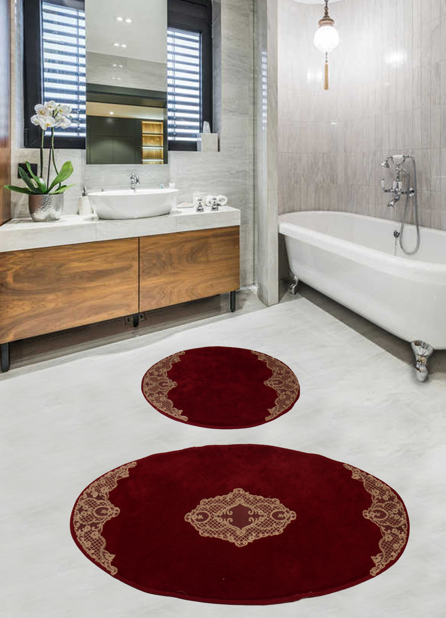 Набор ковриков для ванной комнаты с гипюром Diva Nice Gold 60*100+50*60