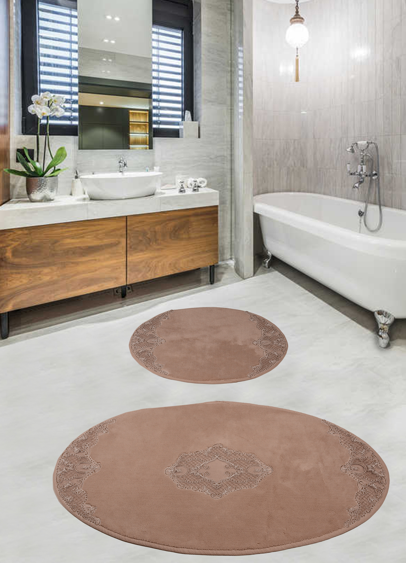 Набор ковриков для ванной комнаты с гипюром Diva Nice Cappuccino 60*100+50*60