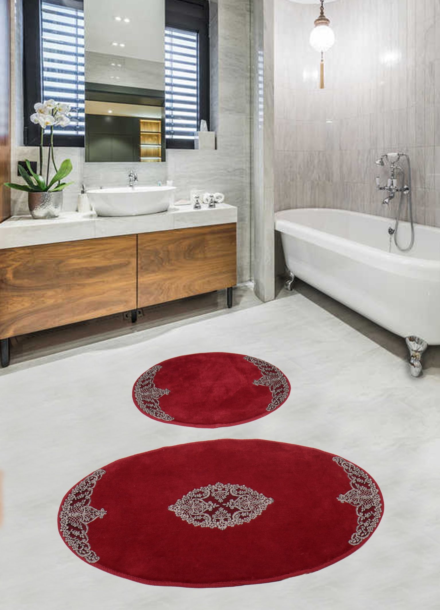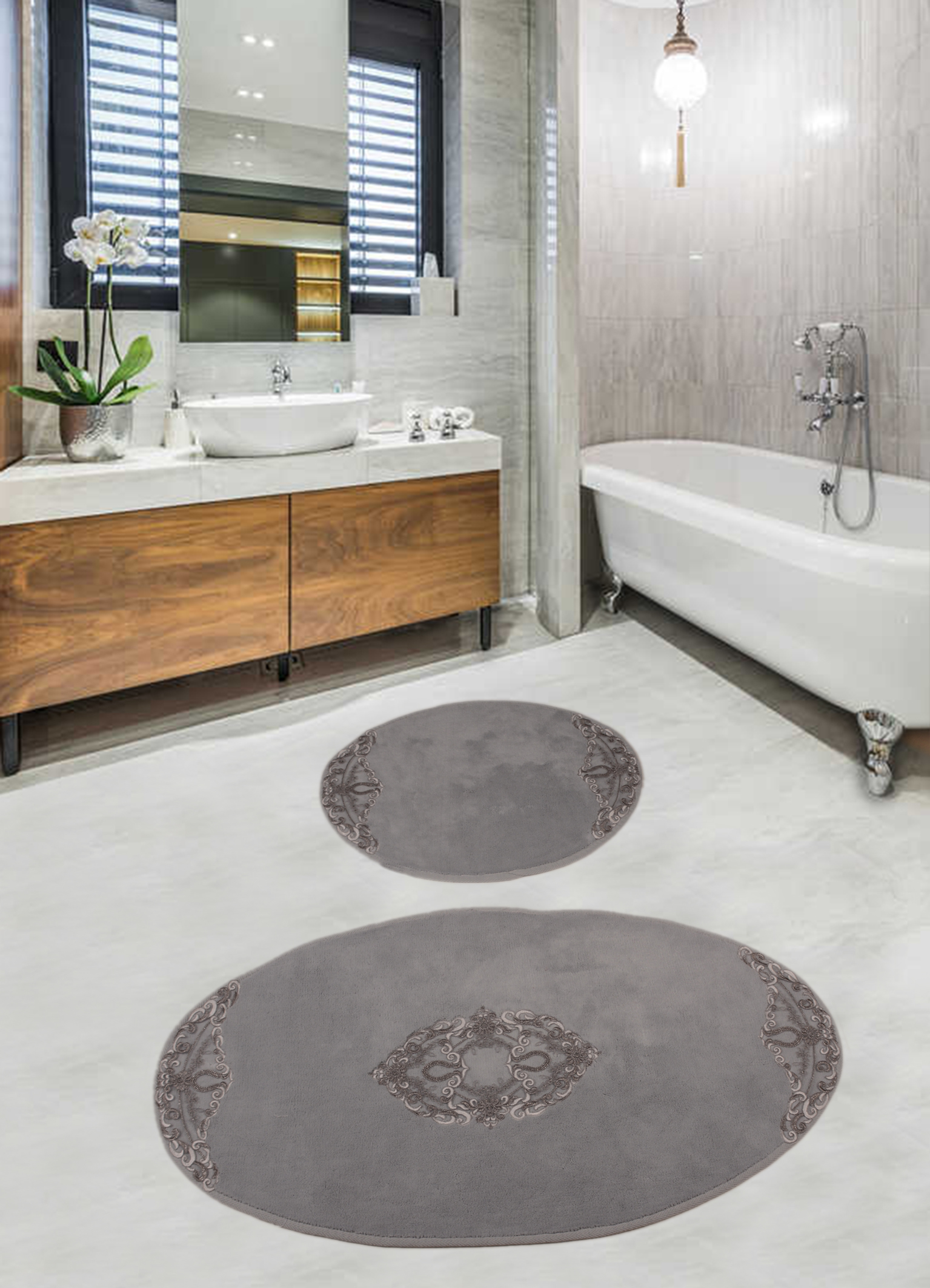Набор ковриков для ванной комнаты с гипюром Diva Nice Silver 60*100+50*60