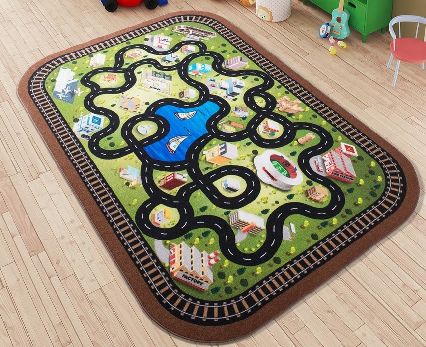 Коврик в детскую комнату Confetti Traffic Lanes Зеленый 100x150