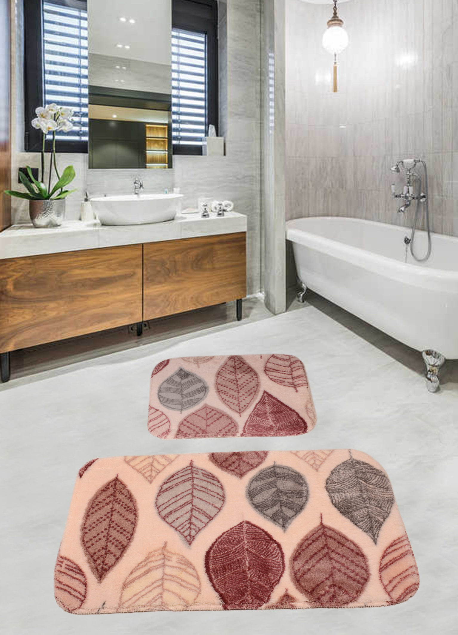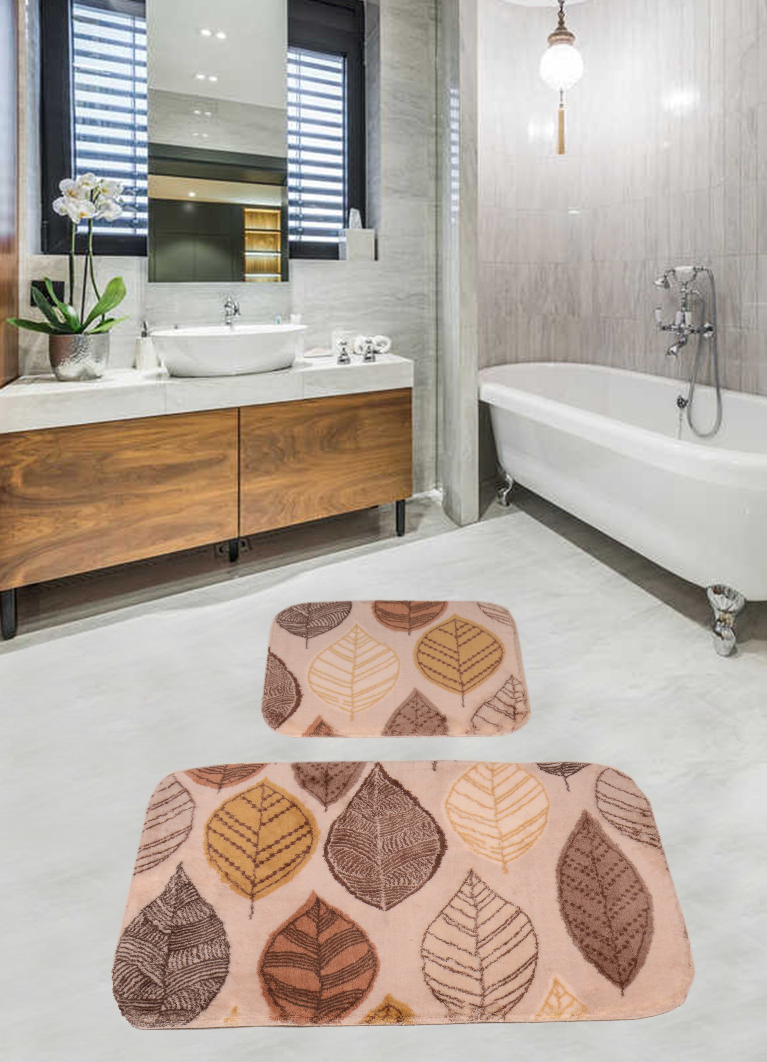Набор ковриков для ванной комнаты Diva Yaprak Pudra 60*100+50*60