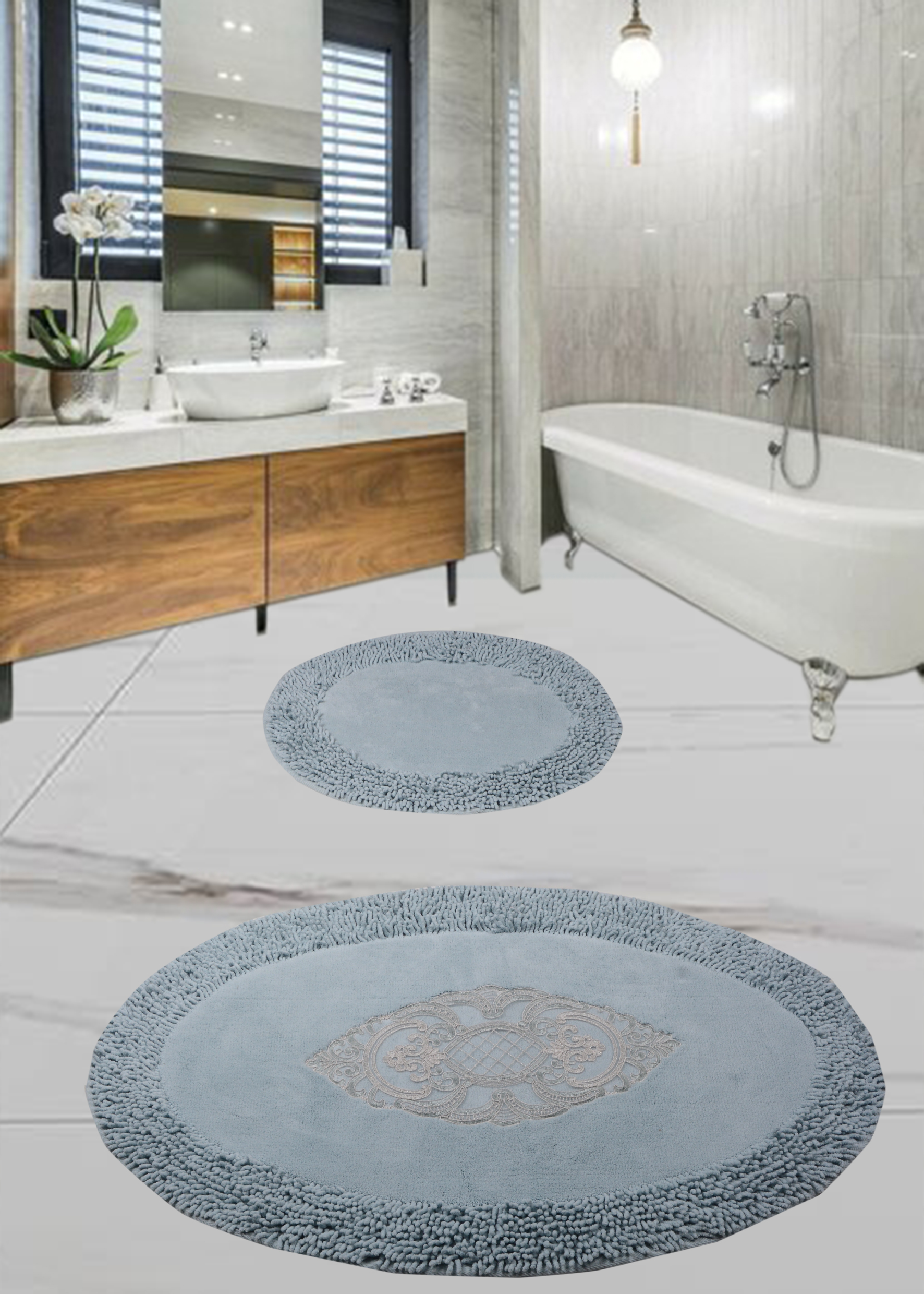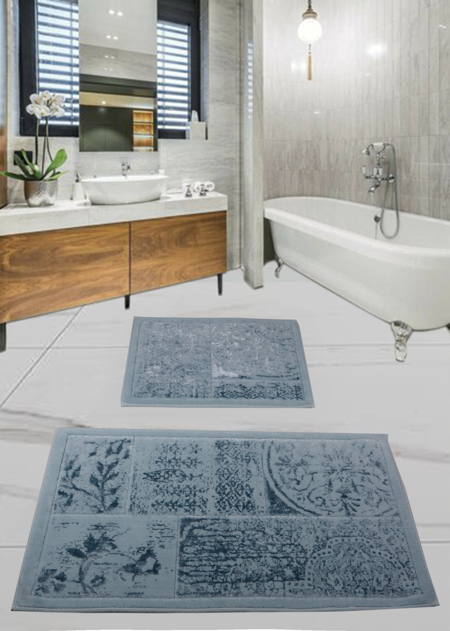 Набор ковриков для ванной комнаты Diva Tas Kivircik Blue 60*100+50*60