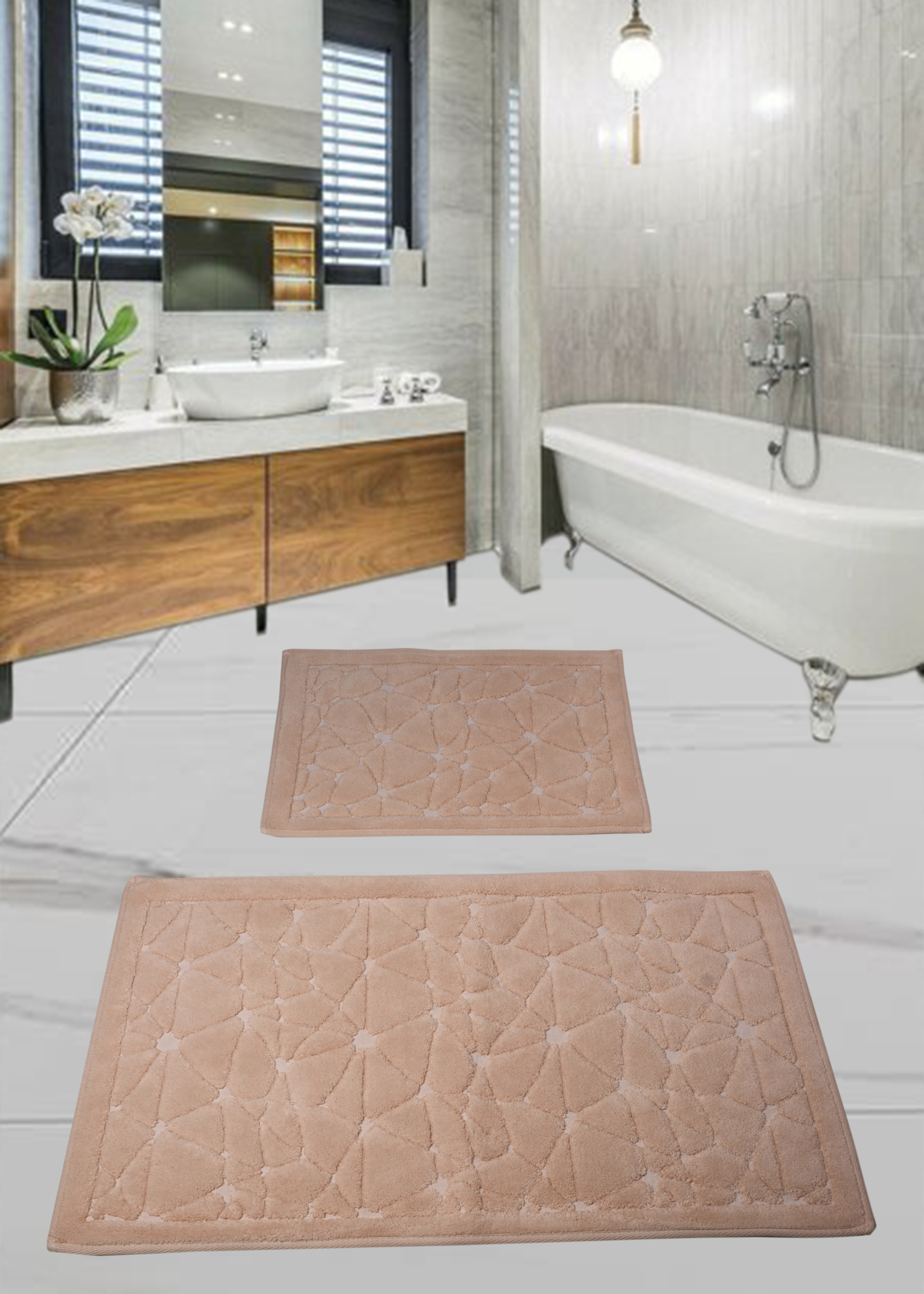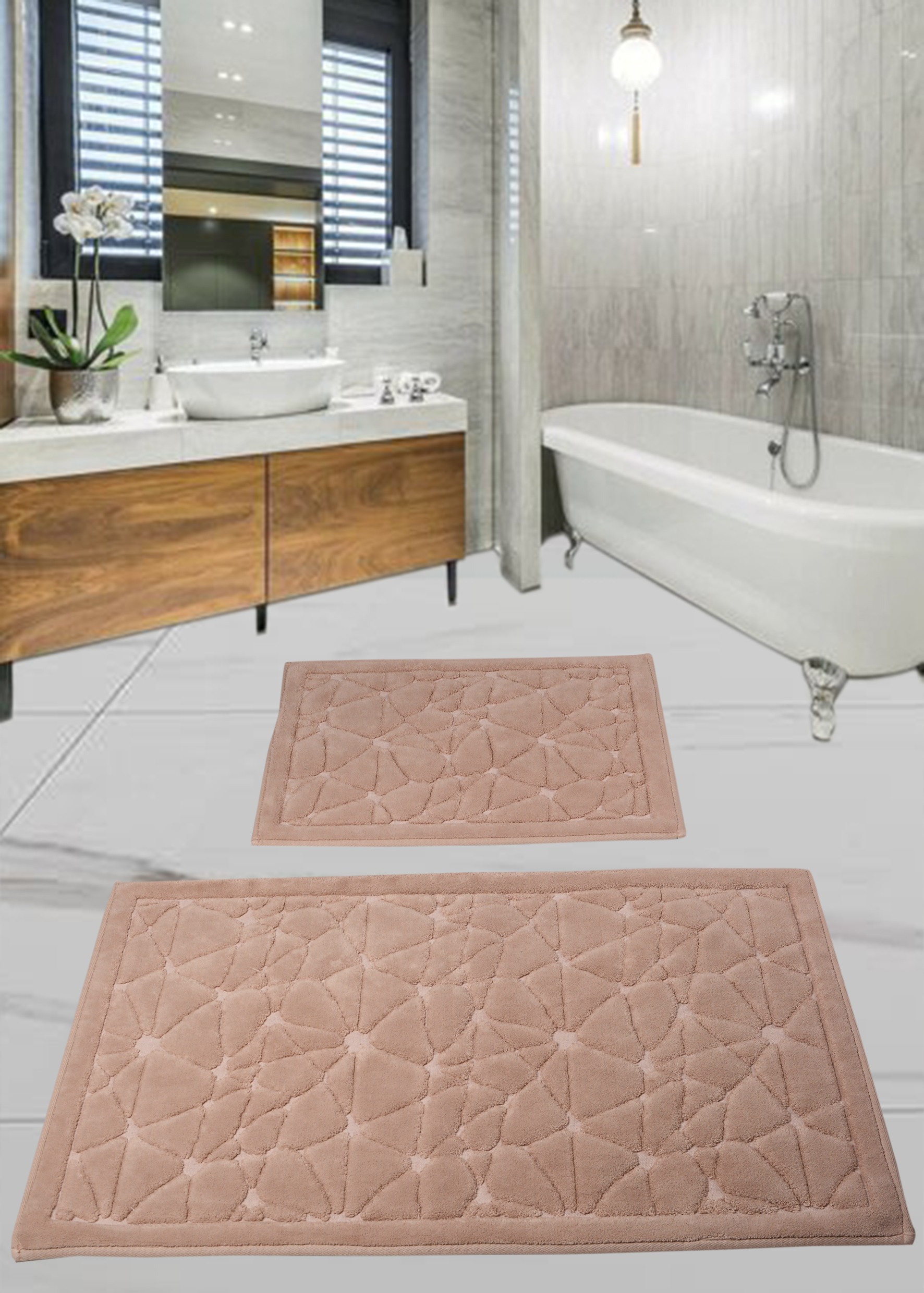 Набор ковриков для ванной комнаты Diva Tas Kivircik Pudra 60*100+50*60