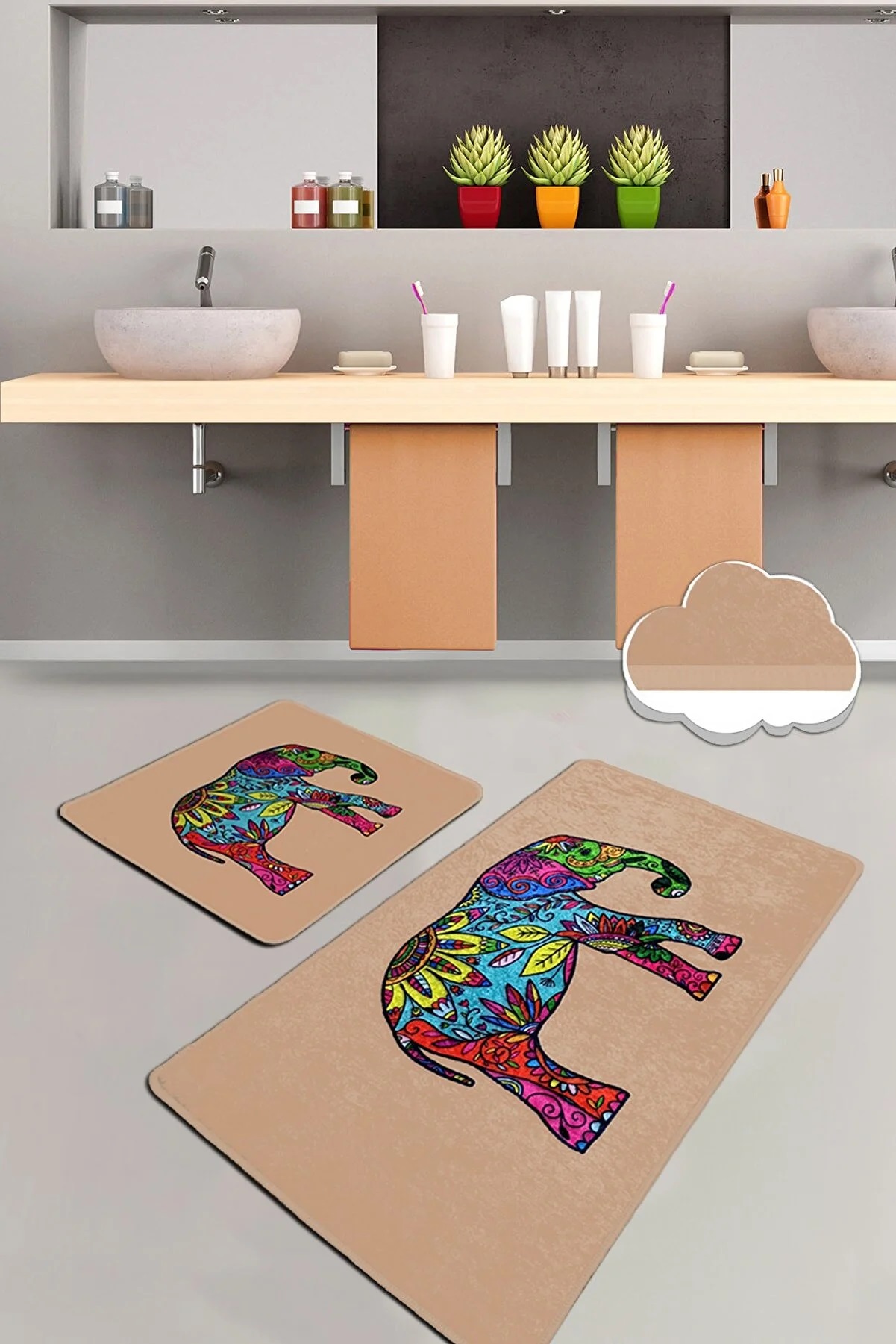 Набор ковриков для ванной комнаты Chilai Home Olifant бежевый 60*100+50*60