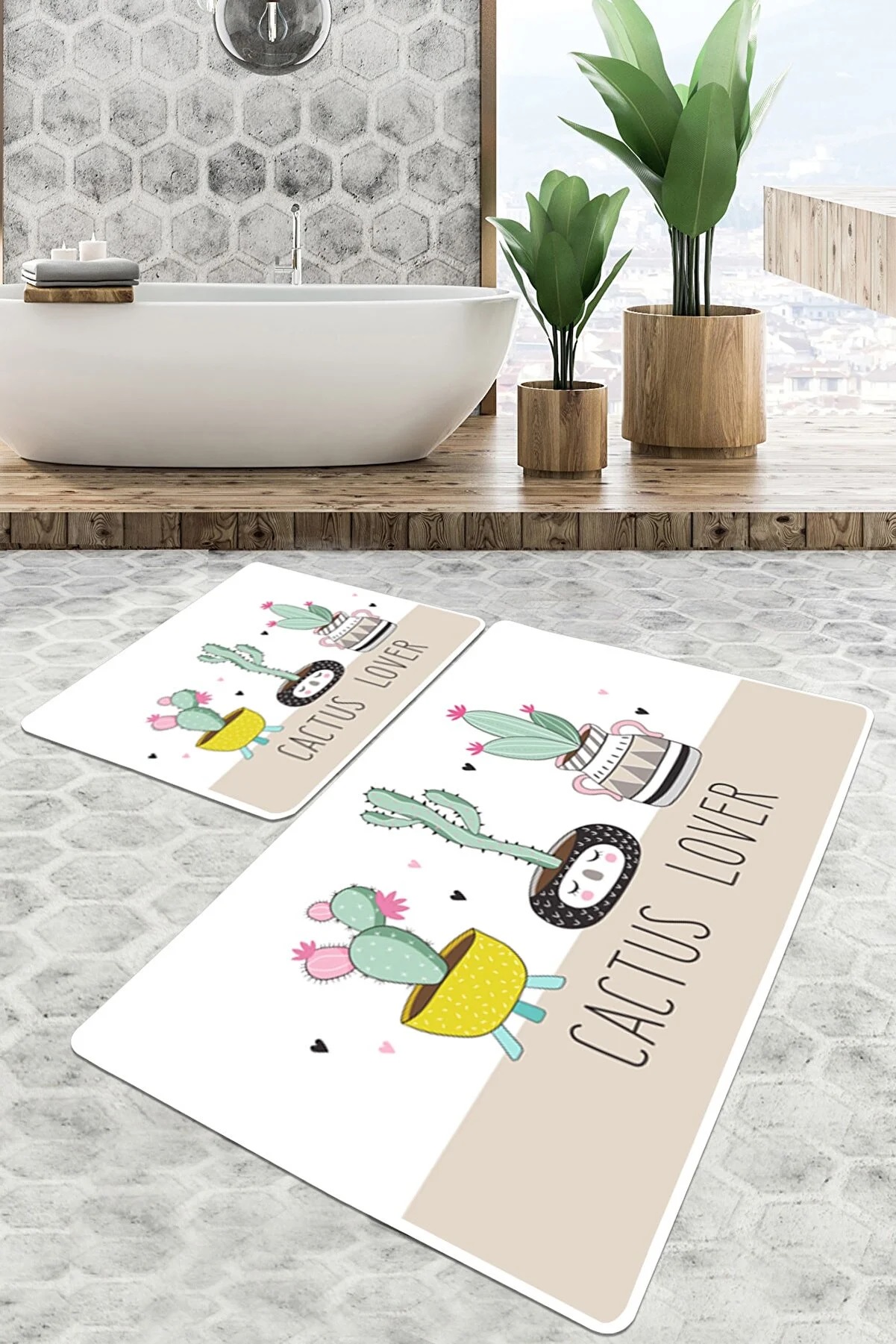 Набор ковриков для ванной комнаты Chilai Home Pink cactus 60*100+50*60