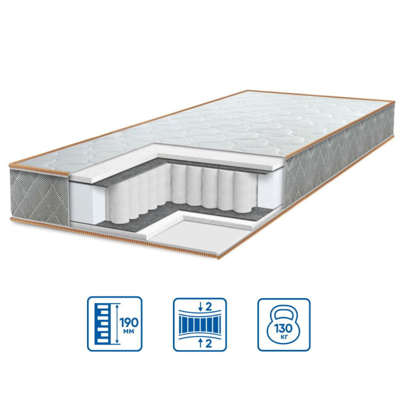 Шари наповнення:• тканина жакард• сінтефлекс • спанбонд• піна еластична• термовойлок • посилений \"Pocket spring\" TFK-272• посилений єврокаркас• термовойлок• піна еластична• синтефлекс• тканина жаккард