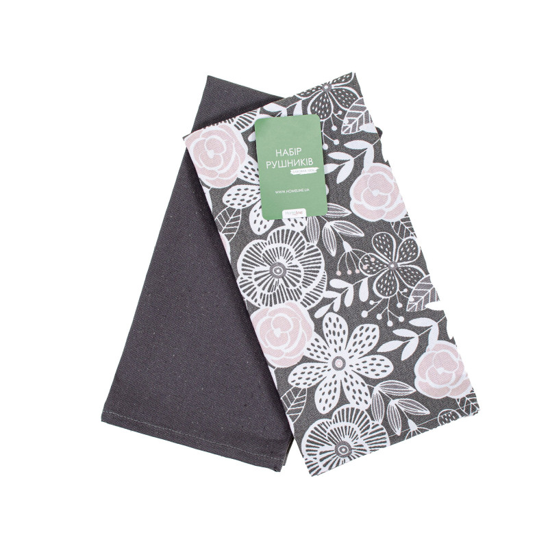 Набір кухонних рушників полупанама "Квіти декоративні" (графітово-фрезові) 45x60см - 2 шт. 177562