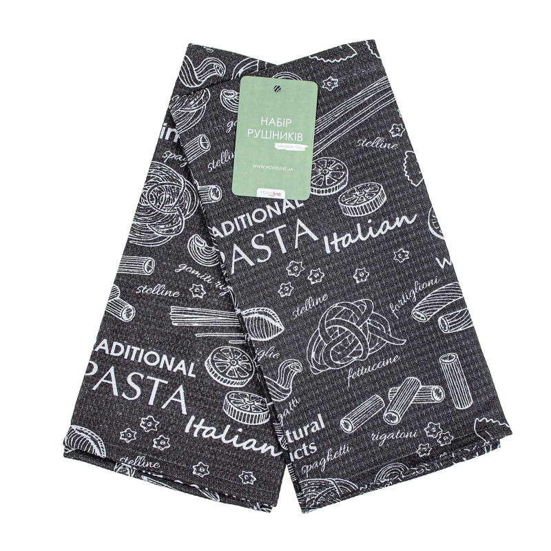 Набір кухонних рушників вафельних Home Line "Паста" 45х60см - 2 шт. (графіт) 176164