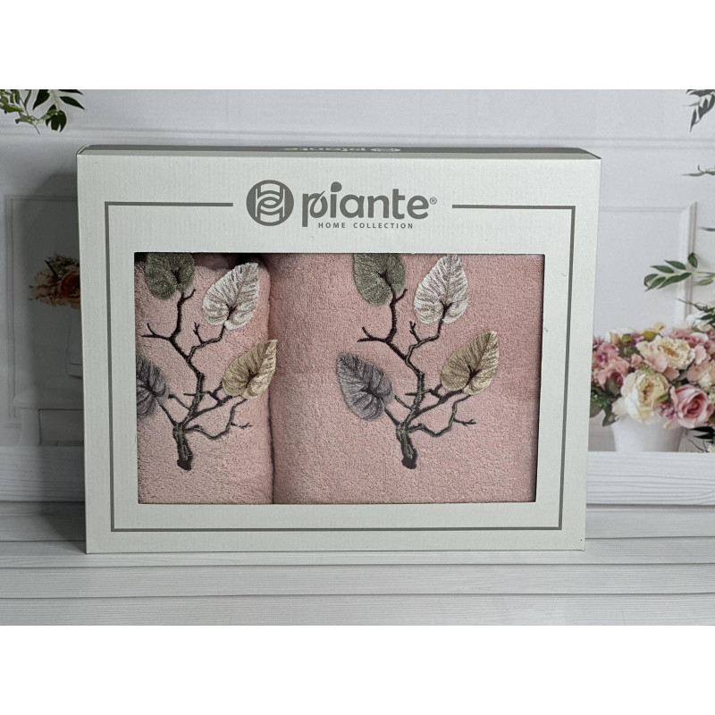 Подарунковий набір рушників від Piante Туреччина.Ніжні на дотик рушники виготовлені з тканини пеньє. Такими вони залишаться багато років.В наборі два рушники: банній 70х140см; для обличча 50х90см.Упаковано в презентабельну подарункову коробку.