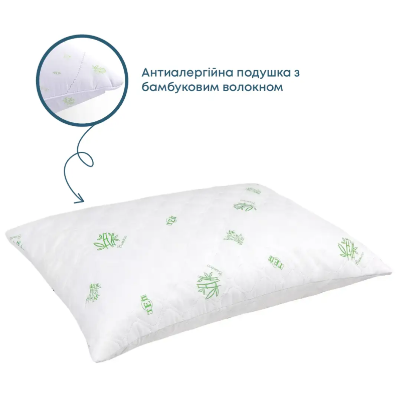 - Екологічність: Наповнювач з бамбукового волокна робить подушку дихаючою та гіпоалергенною.