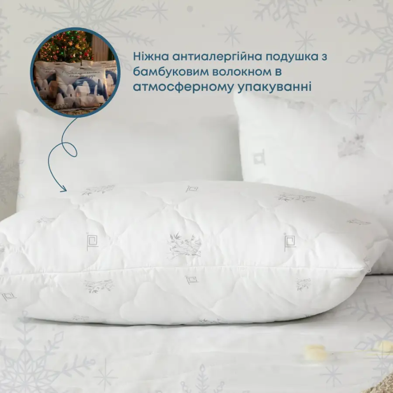 - Антибактеріальні властивості: Бамбукове волокно природно стійке до бактерій та пилових кліщів, що робить подушку ідеальною для алергіків та людей з чутливою шкірою.
