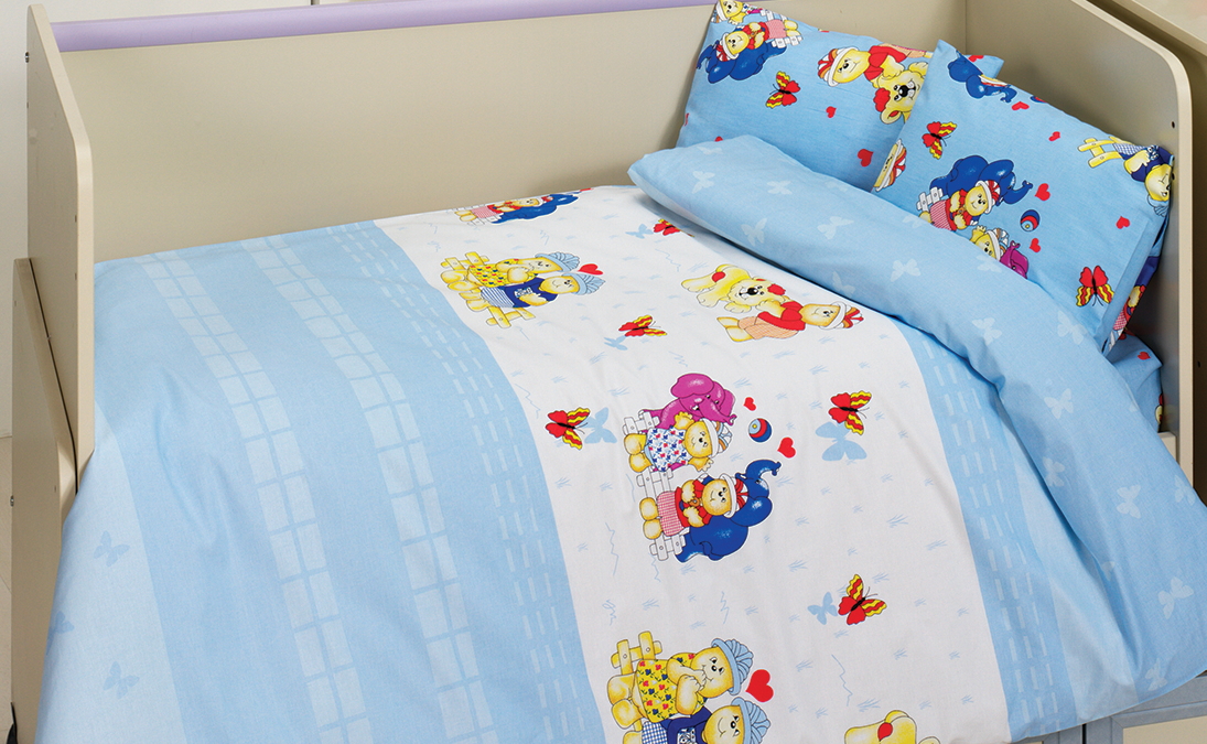 Комплектация: Пододеяльник 100х150х1, Простынь 100х160х1, Наволочка 35х45 (2 шт)