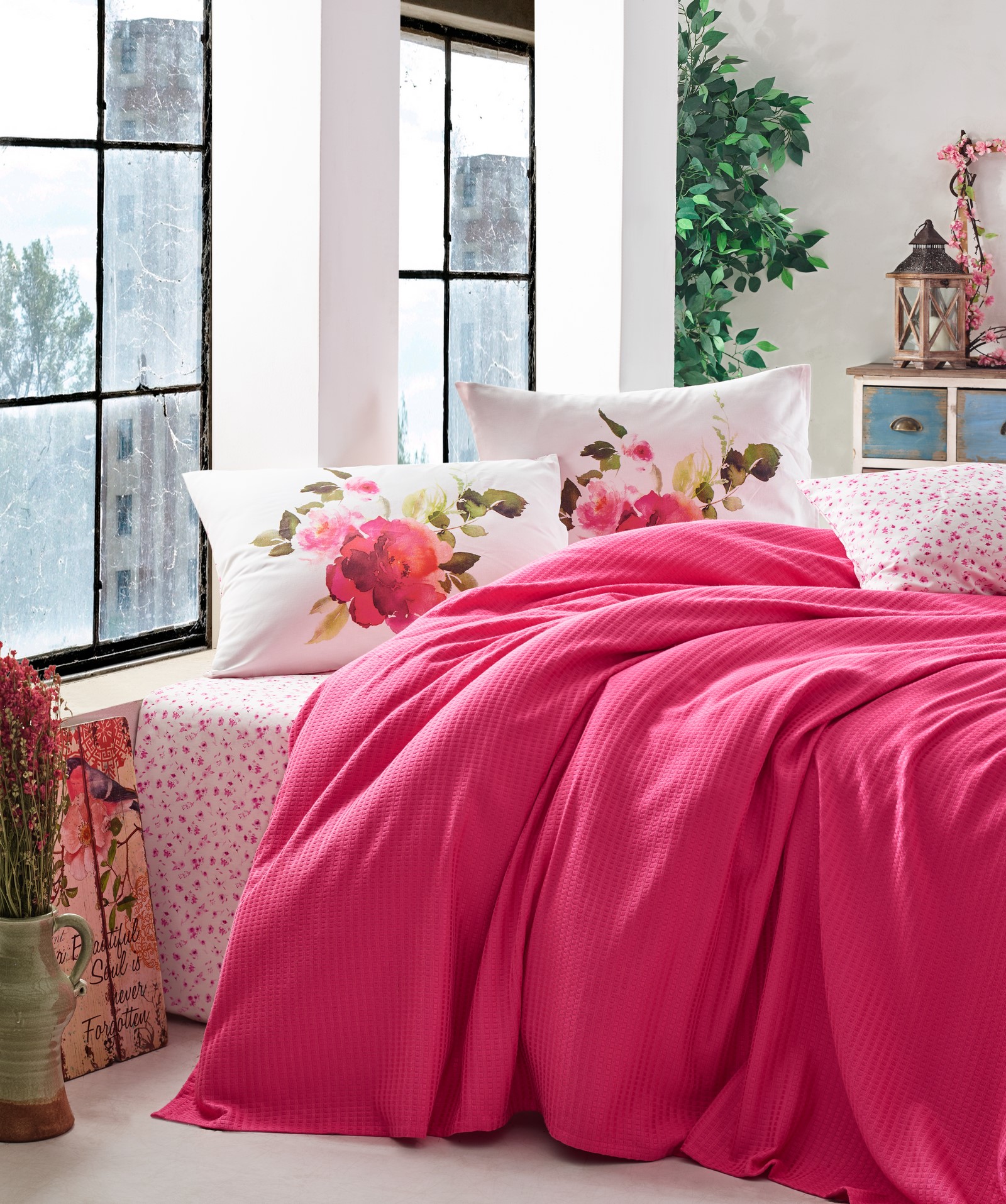 Комплектация: Вафельное покрывало 220х230х1, Простыня 240х260х1, Наволочки 50х70х2