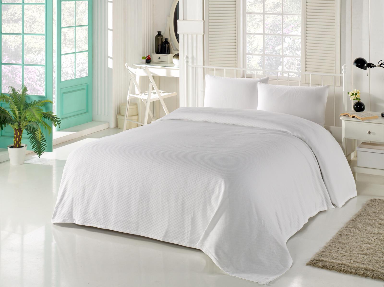 Покрывало на кровать 220х240 см и 2 шт подушка декор с вышивкой IDEIA двустороннее, прочная стежка ткани,