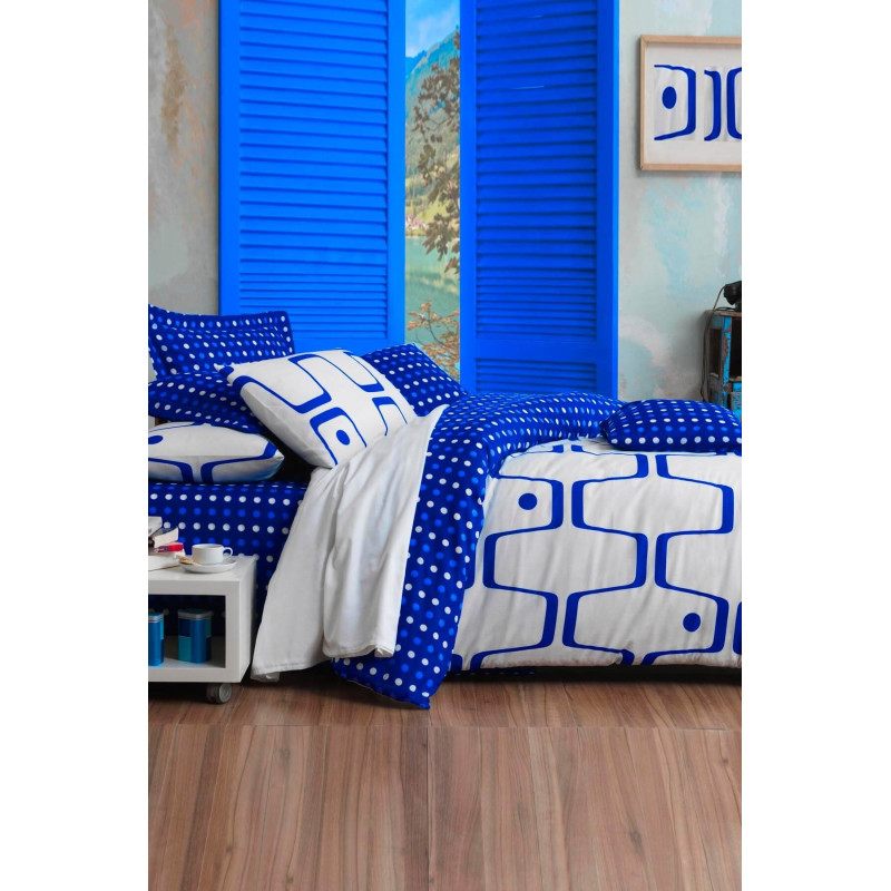 Постільна білизна Eponj Home - Geo Mavi блакитний ранфорс євро