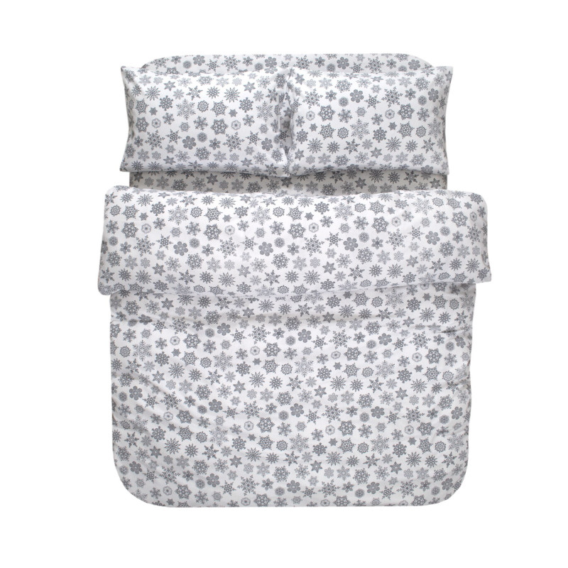 Постільна білизна Lotus Home Фланель - Snowflake білий/сірий полуторний