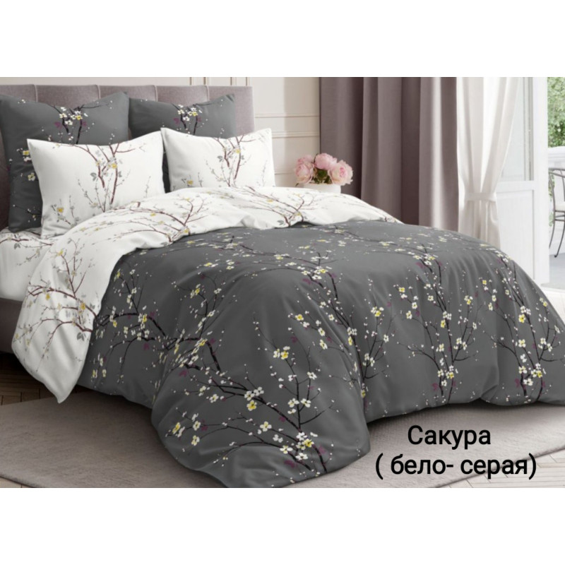 Постільний комплект Сакура біло-сіра