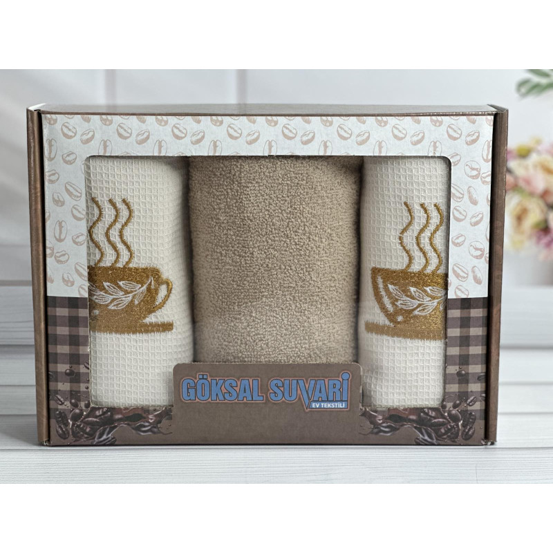 Suvari kofe 003 3в1 40х60см., набір рушників (махра / вафелька). (78006)